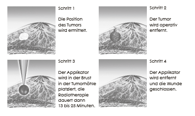 Gegen Ende der Bestrahlungszeit rötet sich die Haut wie bei einem starken Sonnenbrand. Es kann zu Juckreiz oder leichten Schmerzen, vor allem im Bereich der Brustwarze, kommen. Diese Nebenwirkungen sind jedoch von Frau zu Frau, entsprechend der Hautbeschaffenheit, verschieden. Die Brust kann gegen Ende der Bestrahlungszeit anschwellen. Selten kann durch die Bestrahlung eine vorübergehende Müdigkeit ausgelöst werden. Es kommt jedoch nicht zu Haarausfall oder Übelkeit.