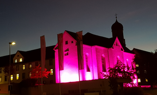 Zur Bekundung unserer Solidarität gegenüber den Brustkrebspatientinnen wurde die Klosterkirche pink angestrahlt!