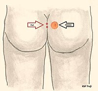 Hier handelt es sich um eine Entzündung des subkutanen Fettgewebes im Bereich der Steissbeinregion. Andere Begriffe für einen Sinus pilonidalis sind Steissbeindermoid, Sakraldermoid, Dermoidzyste, Steißbeinfistel, Jeep´s disease, Raphefistel oder Pilonidalzyste.