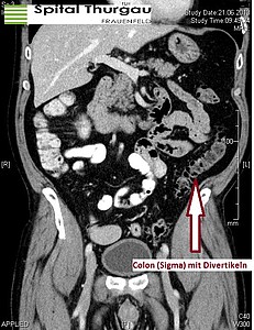 Ein Divertikel bildet sich aus Darmschleimhaut, welche sich durch kleine Lücken der muskulären Darmwand hindurchdrückt. Als Ursache geht man von einer Drucksteigerung im Übergang zwischen Sigma und Rektum (Hochdruckzone des Dickdarms) aus. Diese Divertikel nehmen im Alter zu, bei etwa 60-70% der 70-jährigen Patientinnen und Patienten ist eine sogenannte Divertikulose in der Darmspiegelung zu erkennen. Entzündet sich eines dieser Divertikel, spricht man von einer Divertikulitis. Meist kommt es zu Schmerzen im linken Unterbauch, teilweise begleitet mit Obstipation und Fieber.