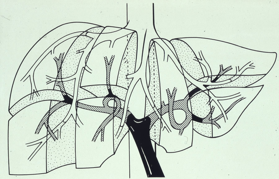 Diese gute Regenerationstendenz wird in der Leberchirurgie ausgenützt. So können bösartige Geschwulste des Lebergewebes, bösartige Ableger (Metastasen) anderer Geschwulste in der Leber und in seltenen Fällen auch gutartige Geschwulste entfernt werden. Die Aufteilung der Leber in 8 Segmente erleichtert die Resektion entlang anatomischer Grenzen. Je nach Ausdehnung der zu entfernenden Geschwulst werden einzelne Segmente, Gruppen von Segmenten oder ein genzer Leberlappen entfernt. Zuerst wird die ganze Leber mittels spezieller Ultraschallsonde untersucht und auf zusätzliche Knoten abgesucht. Dann wird die Gefässversorgung des zu entfernenden Gewebes unterbrochen. Als letzter Schritt wird das Gewebe durchtrennt (Gewebedurchtrennung). Mit einem erfahrenen Operationsteam und erfahrenen Narkoseärzten können trotz der guten Durchblutung der Leber 2/3 dieser Operationen ohne Gabe von Blutkonserven durchgeführt werden (Blutstillung). In der Regel ist nur ein kurzer Aufenthalt auf der Intensivstation nötig und nach 7 - 10 Tagen können die Patientinnen und Patienten das Spital verlassen.