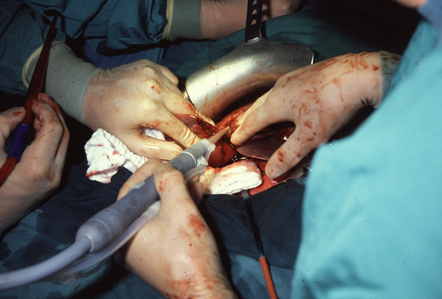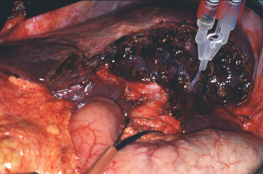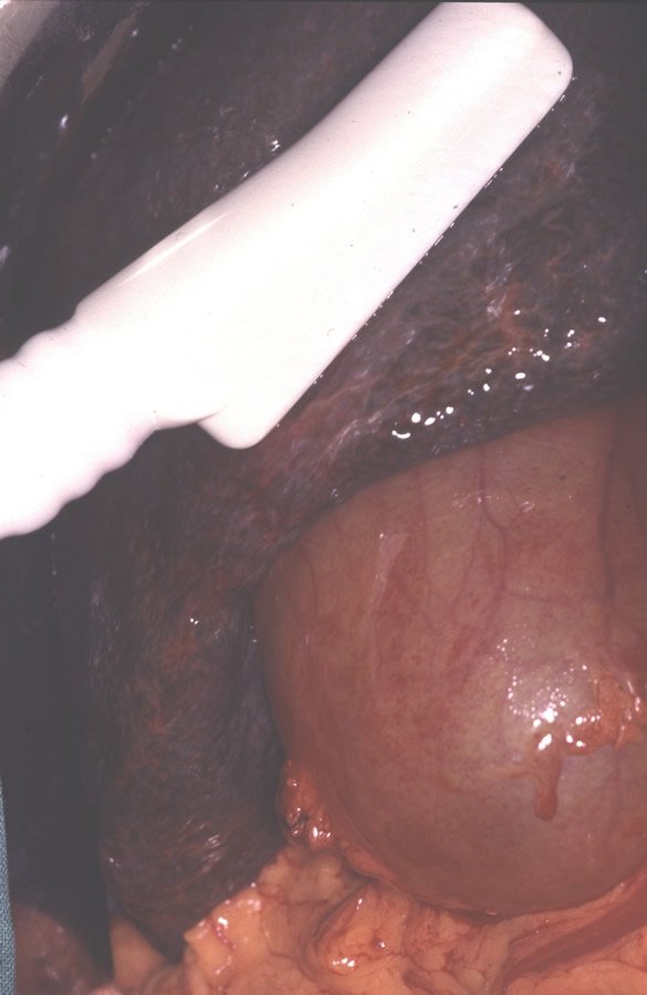 Kleinere Operationen an der Leber können heute bereits auf laparoskopischem Weg durchgeführt werden, wie diese Entfernung einer gossen Leberzyste mit Einblutung demonstriert (Entfernung Leberzyste).