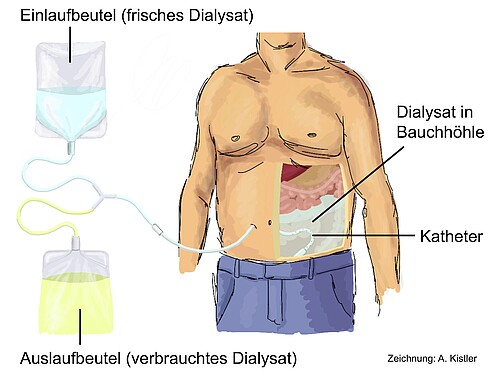 - Nach mehreren Jahren Therapie mit Peritonealdialyse kann es zu einer Erschöpfung der Peritonealfunktion kommen. Dann ist ein Wechsel auf Hämodialyse unumgänglich.