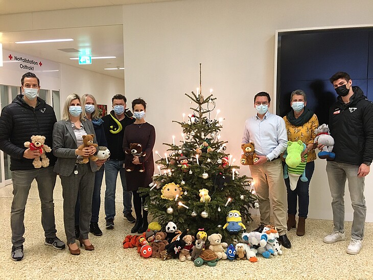 HCT-CEO Urban Leimbacher sowie Stürmer Fabio Hollenstein überreichten der Spital Thurgau am vergangenen Freitag, 10. Dezember 2021 Teddybären und Plüschtiere. Die Stofftierchen wurden am Sonntags-Heimspiel des HCT gesammelten.