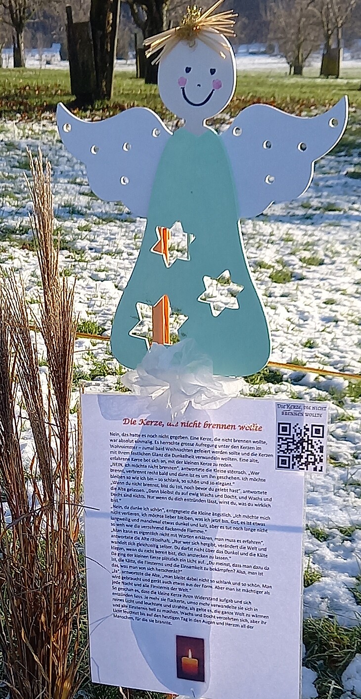 Jeder Engel ist mit einer Weihnachtsgeschichte und einem QR-Code bestückt. Die Geschichten sollen Weihnachtsstimmung, ein wenig Hoffung und Mut bringen und die Engel ein kleines Lächeln auf die Gesichter der Betrachter zaubern.
