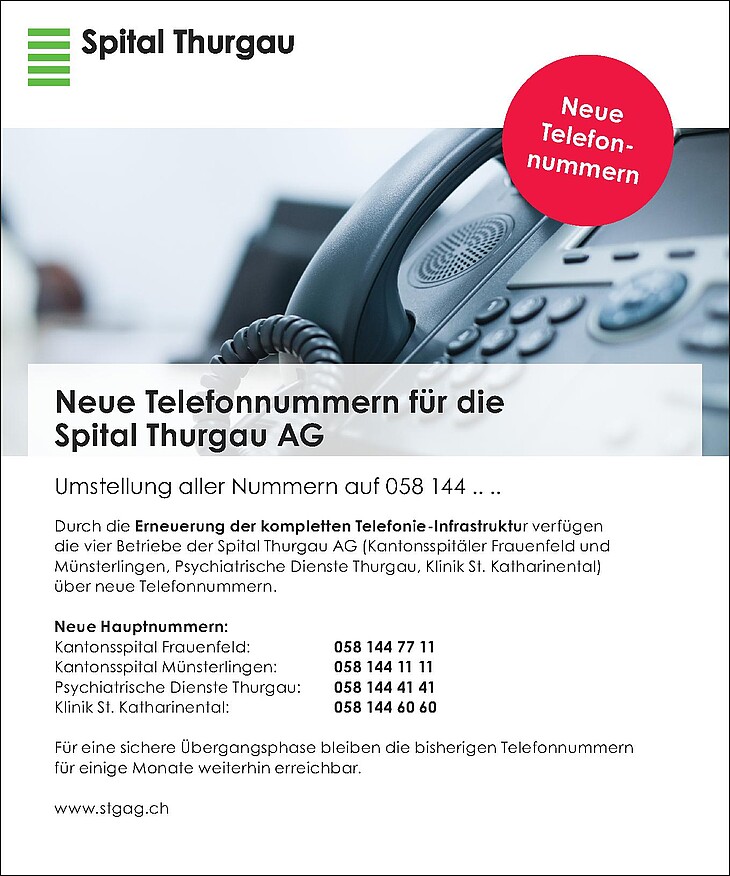 | Kantonsspital Frauenfeld | 058 144 77 11 |